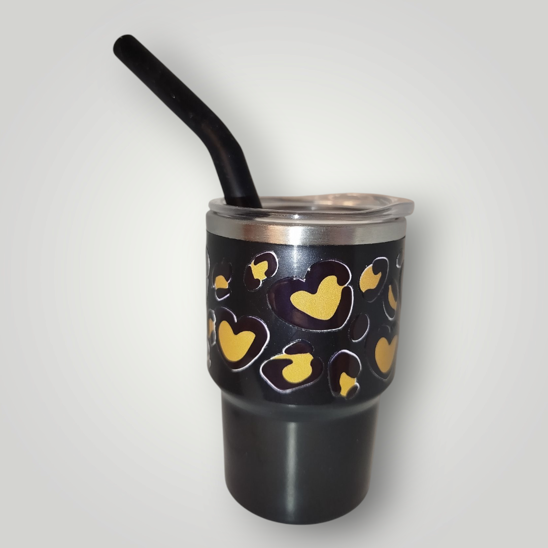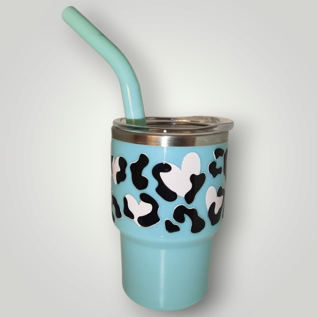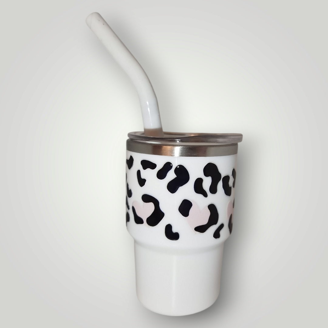 Mini Thermobecher mit Deckel und Strohhalm und Wunschmotiv
