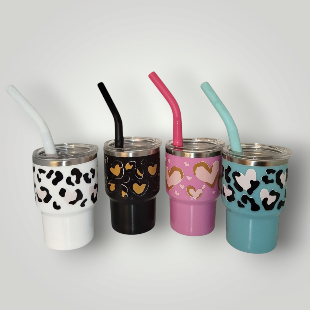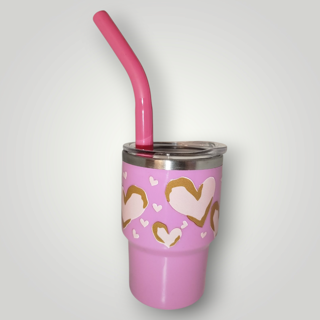Mini Thermobecher mit Strohhalm und Deckel fur den kleinen Schluck zwischendurch und Buchstabenanhänger.
