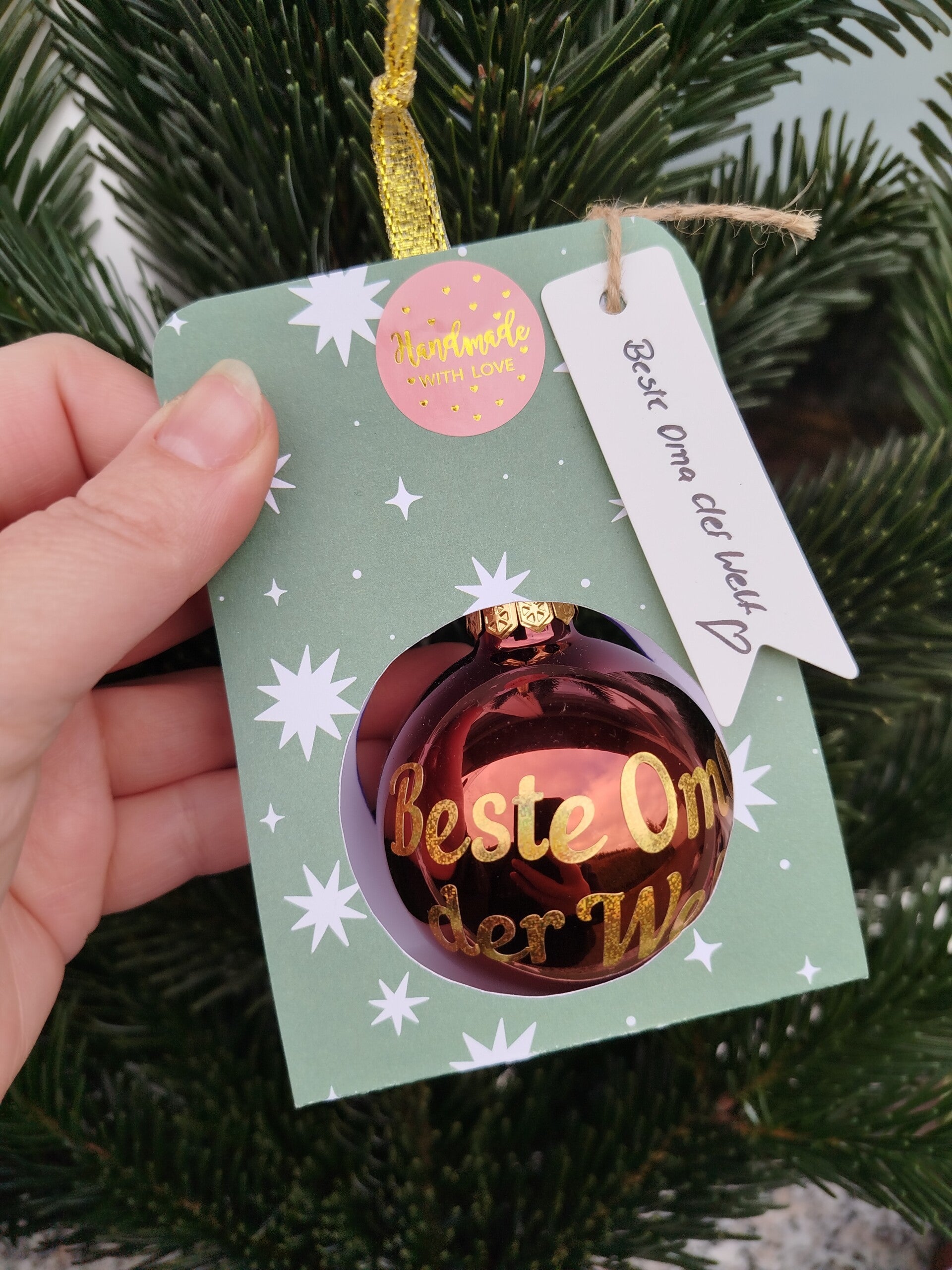 XMAS Kugel mit Spruch mit Geschenkverpackung