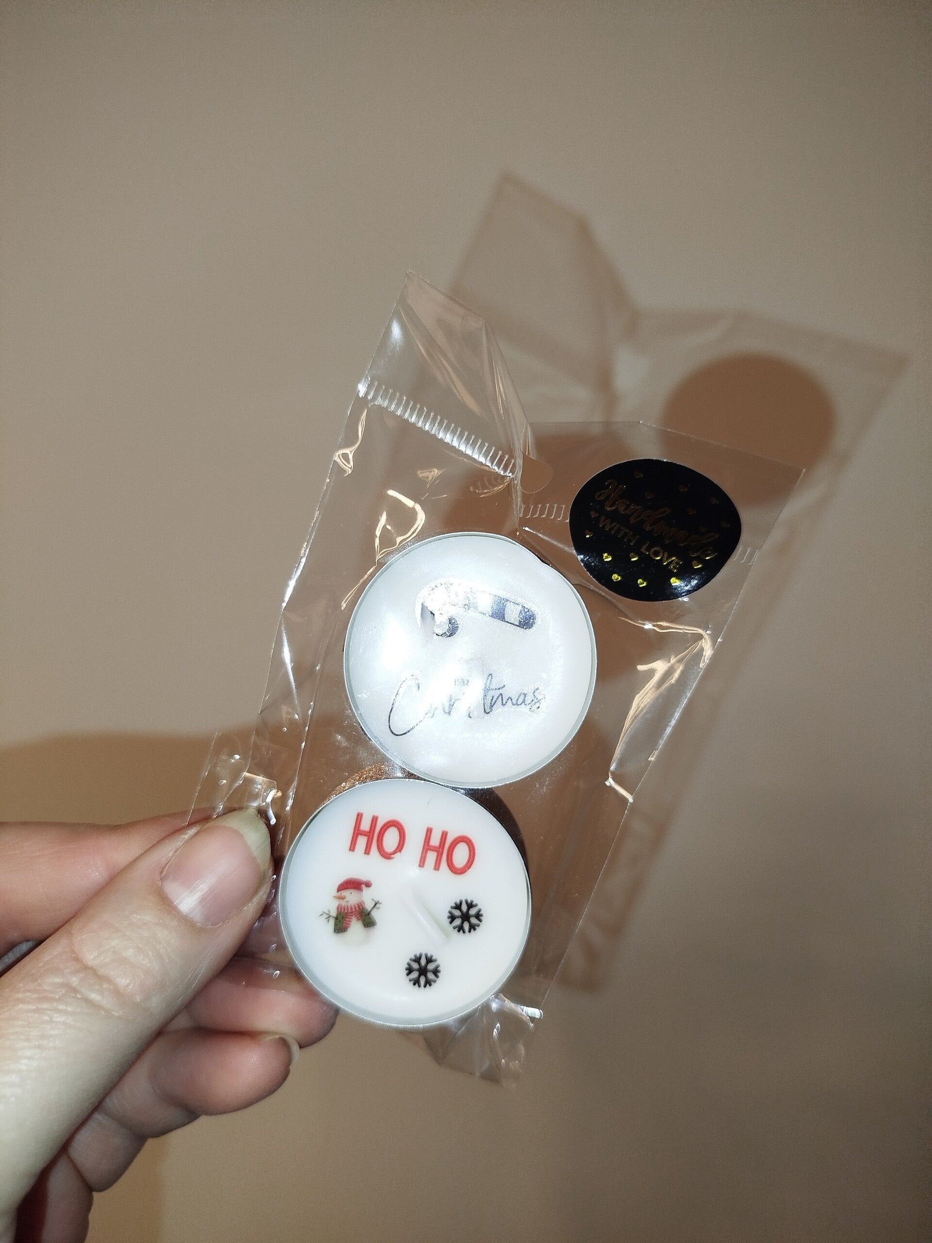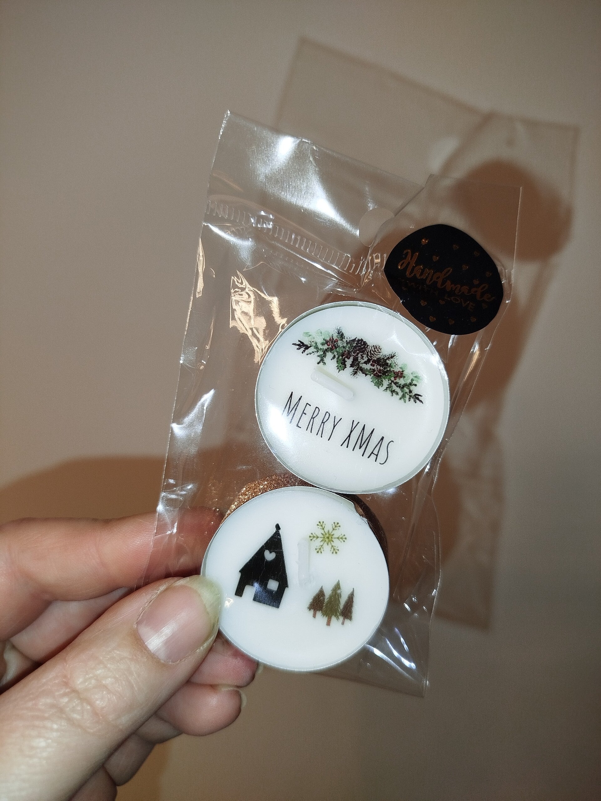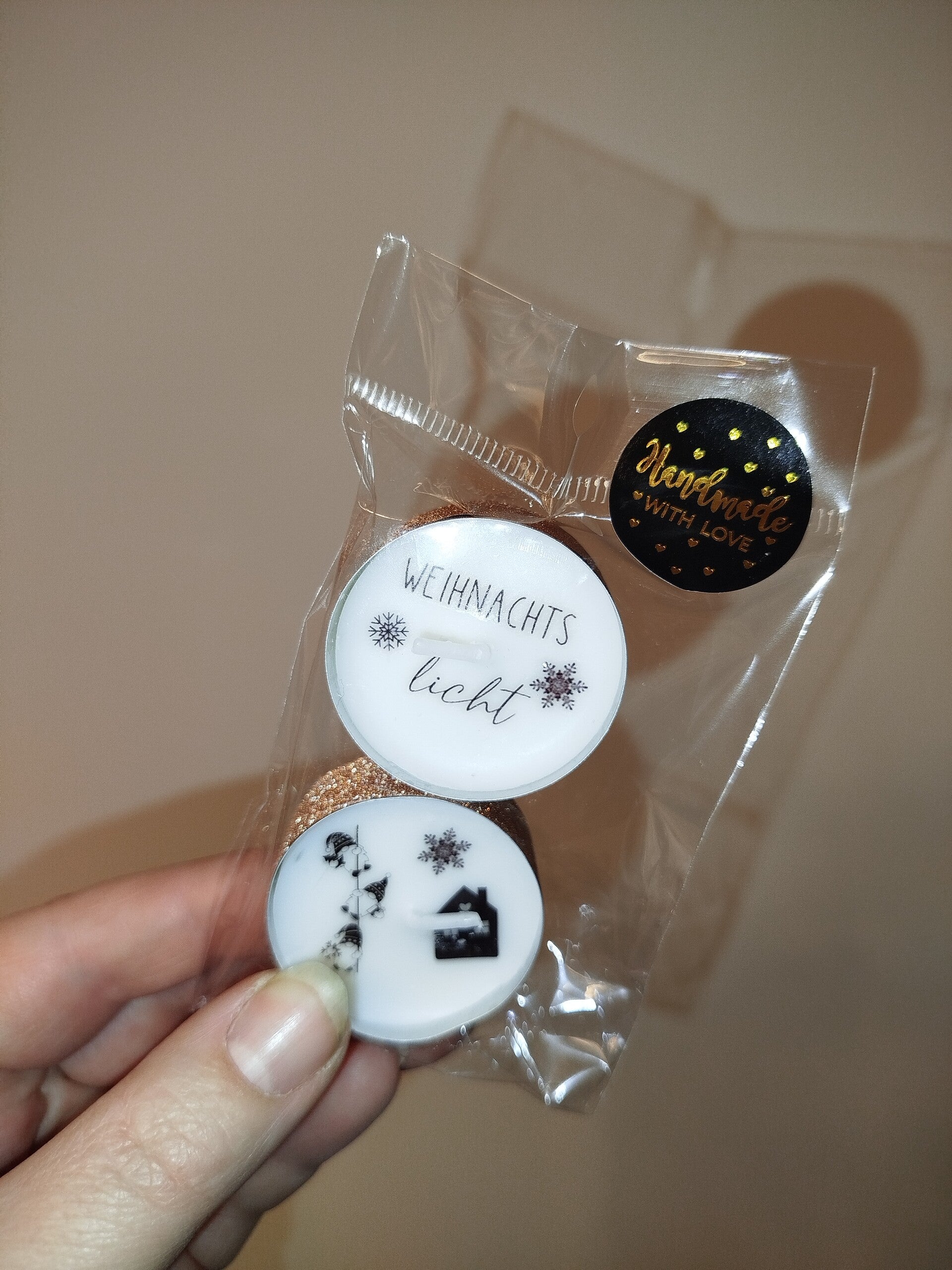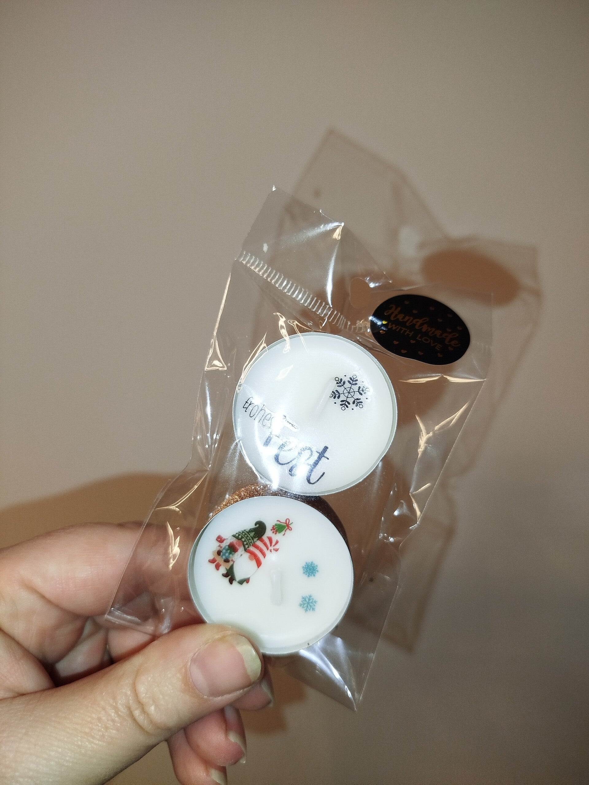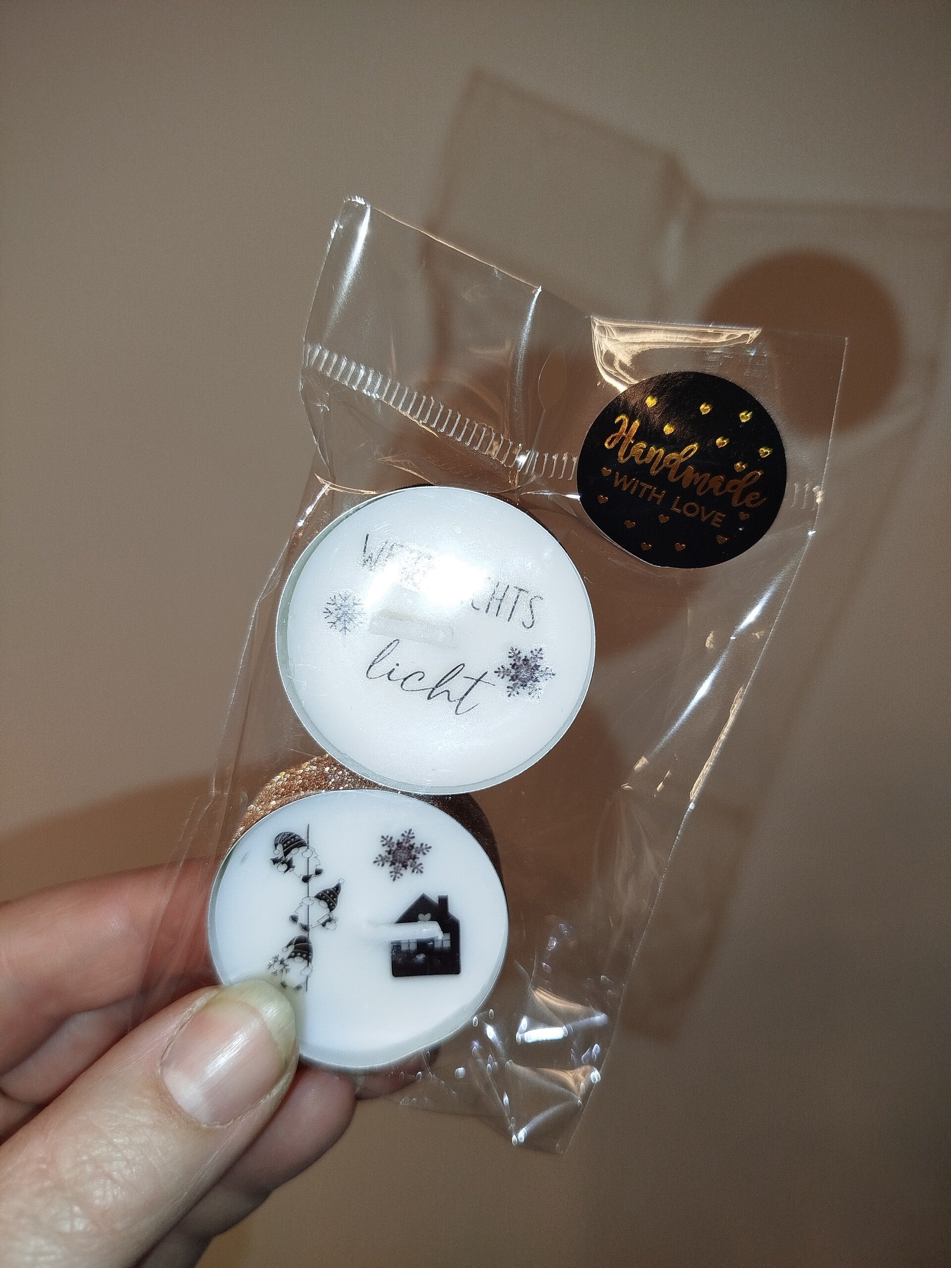 Inhalt: 2er Teelichter mit Weihnachtstattoos