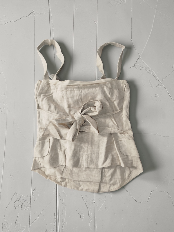 Modisches Leinentop mit Knöpfen und einer Schleife zum Binden in der Farbe Beige