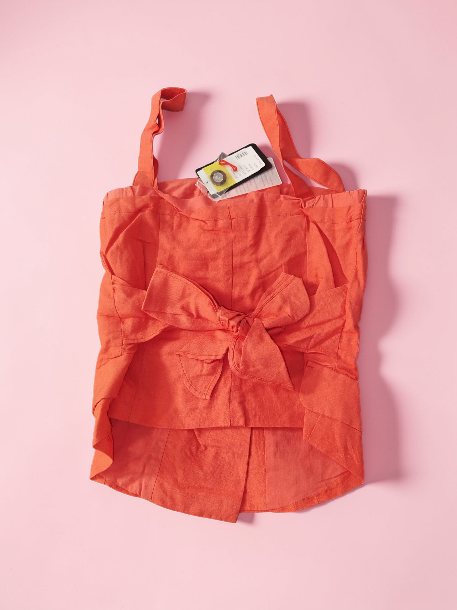 Modisches Leinentop mit Knöpfen und einer Schleife zum Binden in der Farbe Orange